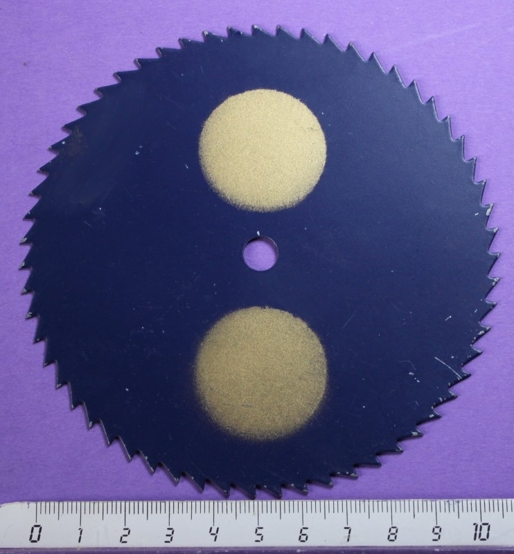 Metal moon disc with stylized moons on blue background