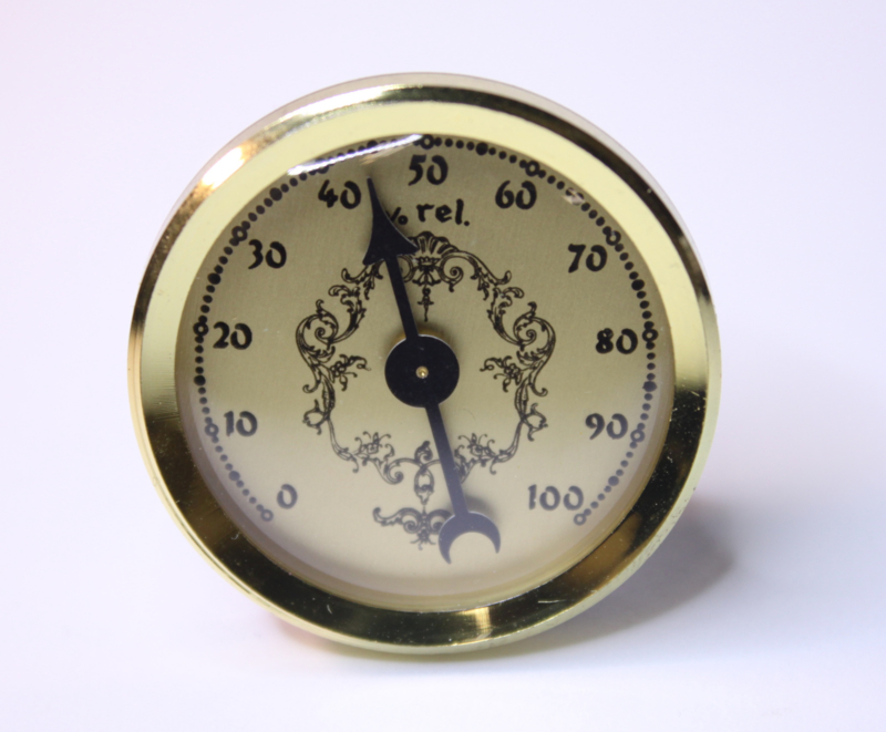 Inset, hygrometer. For installation in barometer cabinet or weather station, among others.