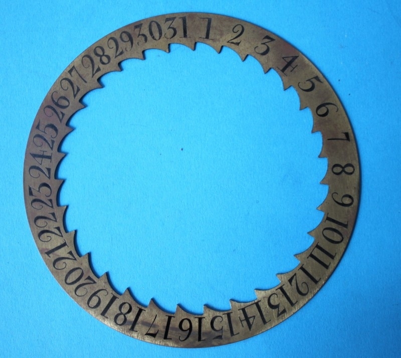 dt.003 Oude messing datumring met geëtste en gezwarte cijfers