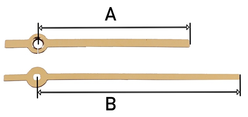 Set quartzwijzers. strak recht model met staart, aluminium.