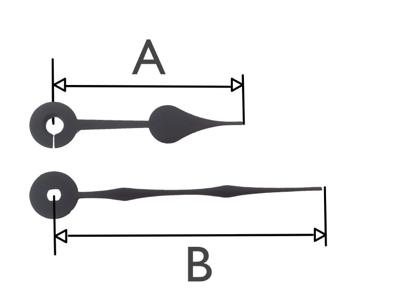 • B= 74 mm (minutenwijzer: 3,5 mm x 2,8 mm)