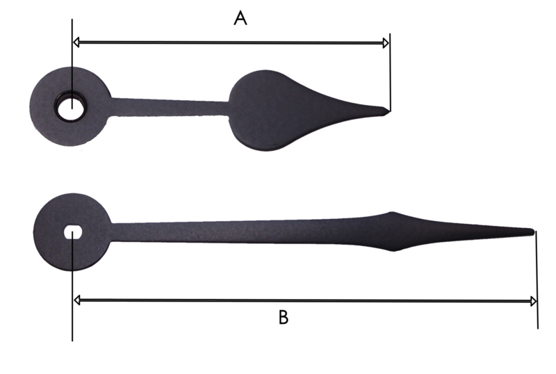 - B= 90 mm (minutenwijzer: 3,5 mm x 2,8 mm)