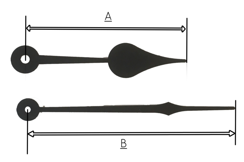 - B= 140 mm (diameter asgat minutenwijzer 3,65 mm)